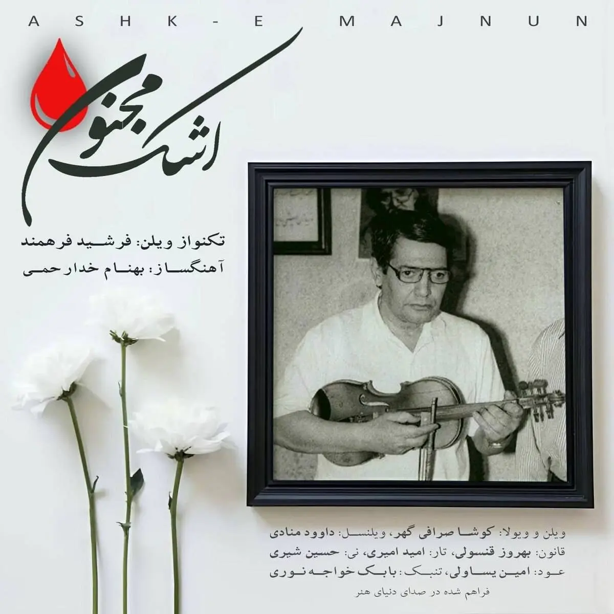 «اشک مجنون» قطعهای ارکسترال برای ویلن ایرانی است و نوازندگانی همچون کوشا صرافی گهر (ویلن و ویولا)، داوود منادی (ویلنسل).