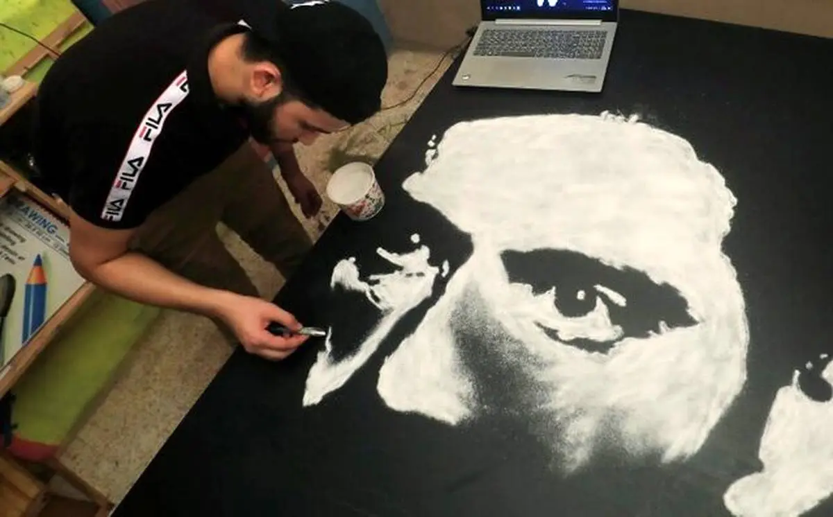 سرنا_یک هنرمند مصری با طراحی دقیق نمک روی یک صفحه سیاه، تابلوهای ماندگار از جنس نمک خلق می‌کند.