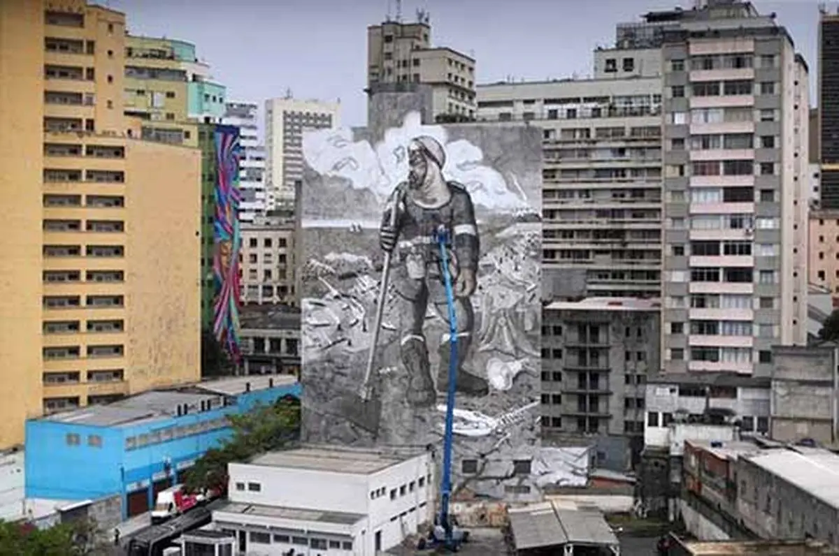 به نقل از رویترز، «موندانو» که یک هنرمند برزیلی است با استفاده خاکسترهای ناشی از آتش‌سوزی‌ جنگل‌های آمازون یک دیوارنگاره عظیم در یکی از خیابان‌های «سائوپائولو»‌ خلق کرده است. «موندانو»‌ بر روی دیوار یک ساختمان عظیم تصویر یک آتش‌نشان حین خاموش کردن آتش و در میان حیوانات جان‌باخته را نقاشی کرده است.