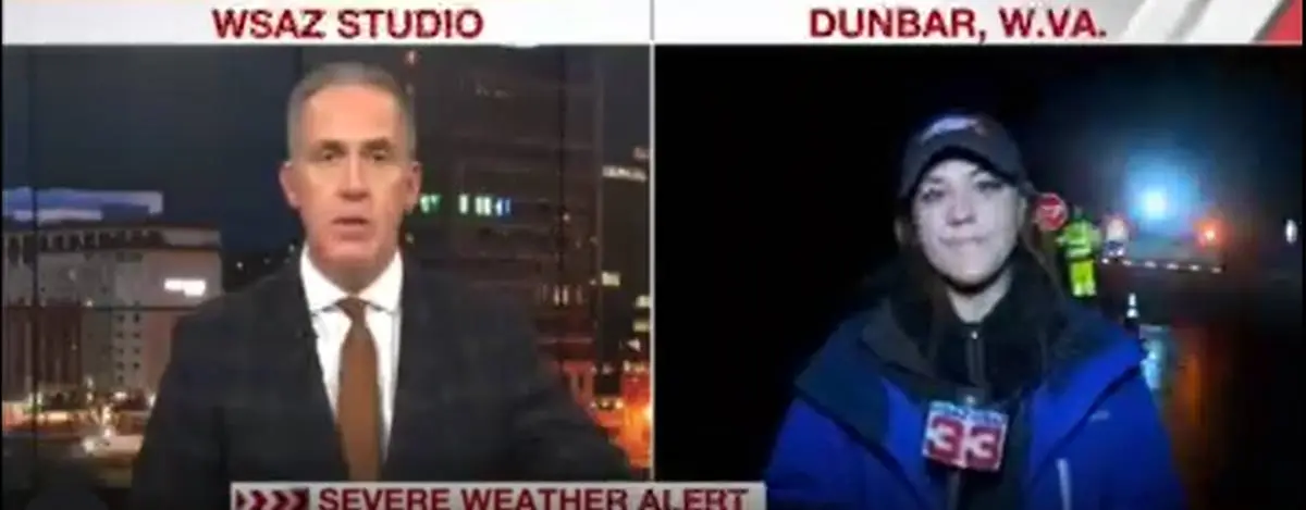 تصویری عجیب از برخورد خودرو با خبرنگاری در ایالت ویرجینیای غربی در برنامه زنده را می بینید که پس از برخورد بلند شد و گزارشش را به اتمام کرد.