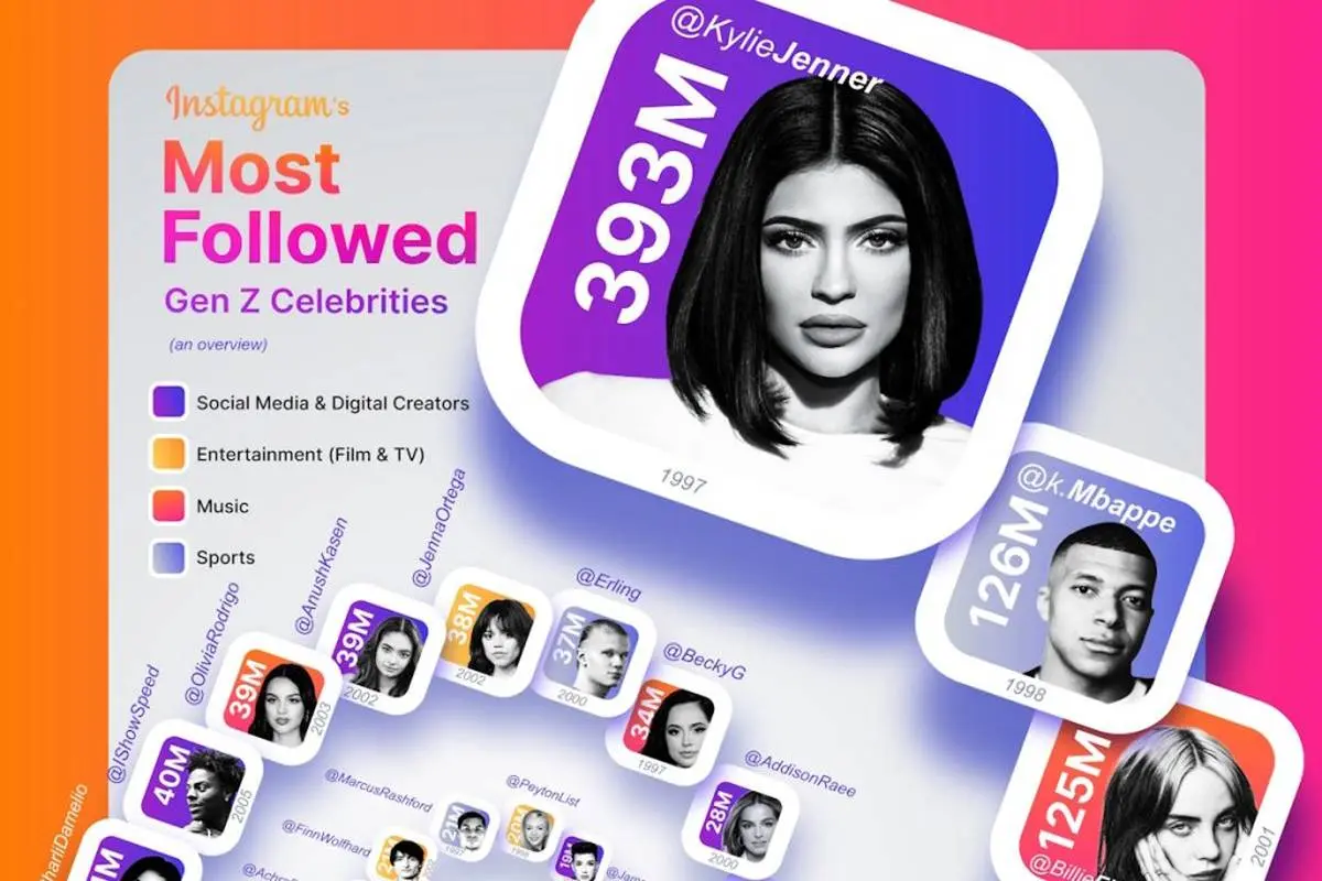 پرطرفدارترین سلبریتی‌های نسل Z در اینستاگرام در سال ۲۰۲۵