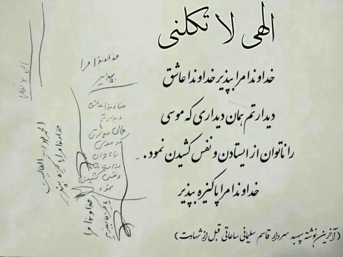 آخرین دست نوشته سردار سلیمانی ساعاتی قبل از شهادت