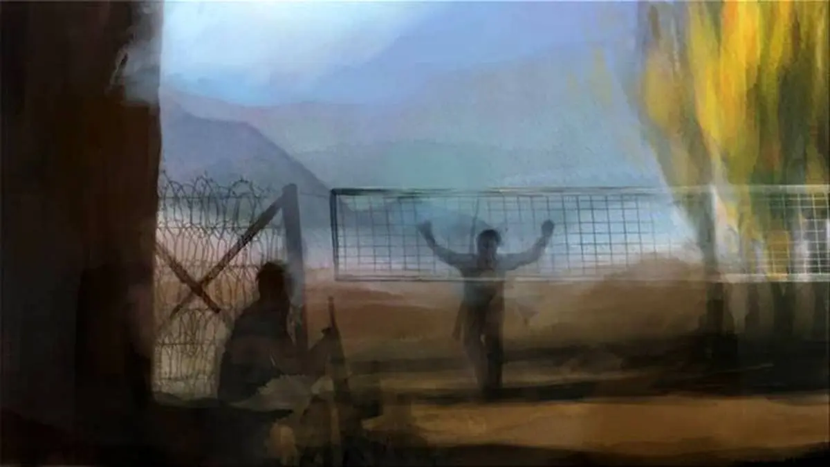داستان انیمیشن «والیبال»، درباره دو سرباز است که لب مزر کشورشان هستند. این سربازان بخشی از سیم خاردار را برمیدارند و به جایش تور والیبال میگذارند. توپ والیبال به صورت تمثیلی شبیه ماه و خورشید هم هست که بین مرز دو کشور جابه جا میشود. بعد جنگ شروع میشود. این داستان پایان باز دارد و نتیجهگیری خاصی نمیکند. زمان این انیمیشن حدودا سه دقیقه و نیم است.