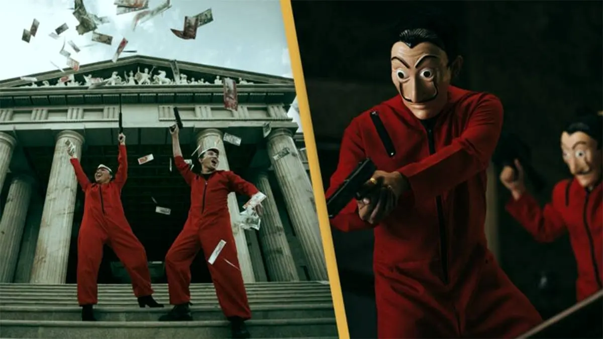 اندرو رولیو و انیز جید یک زوج جوان ۲۸ ساله، با پوشیدن لباس‌های قرمز و ماسک‌های سالوادور دالی برای بازسازی صحنه‌های این مجموعه درام محبوب اقدام به عکاسی کردند. یک عکاس فیلیپینی این زن و شوهر را در معبد لی، شهر سبو، در فیلیپین برد و با اسلحه و پول‌های جعلی آن‌ها را آماده کرد. این معبد بسیار شبیه ضرابخانه سلطنتی اسپانیا است، جایی که اکثر صحنه‌های سرقت فیلم در آن فیلم‌برداری شده‌است.