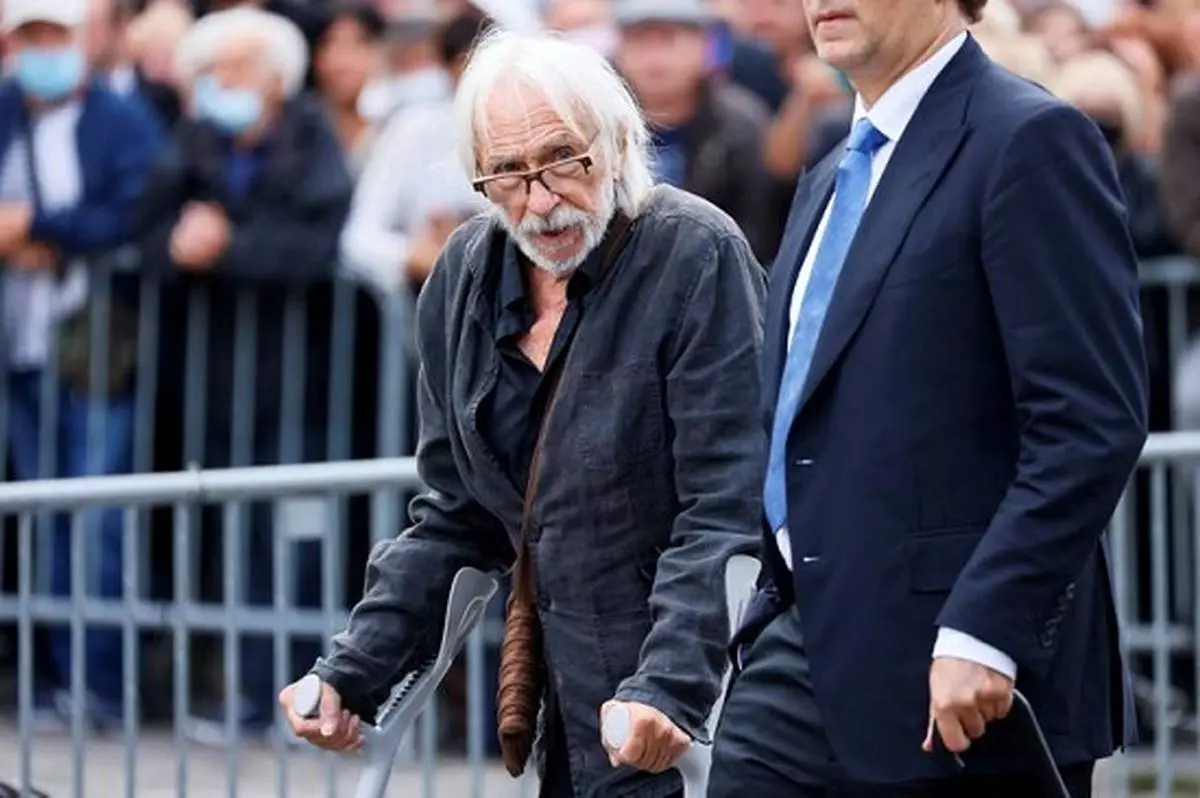 آلن دلون با عصا در مراسم خاکسپاری رفیق قدیمی