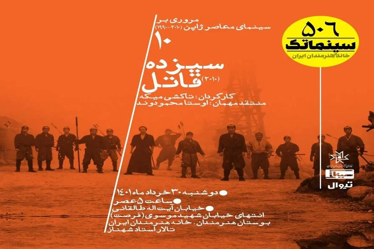دهمین جلسه مرور فیلمهای تاریخ معاصر سینمای ژاپن در سینماتک خانه هنرمندان ایران که روز دوشنبه ۳۰ خرداد ۱۴۰۱ از ساعت ۱۷ در سالن استاد شهناز این مجموعه برگزار میشود، به نمایش فیلم «سیزده قاتل» به کارگردانی تاکشی میکه و نویسندگی دایسوکه تنگان اختصاص دارد.