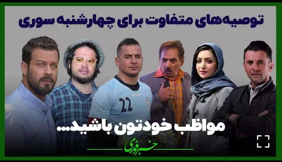 برخی چهره ها توصیه هایی برای شما عزیزان در شب چهارشنبه سوری دارند، به عنوان مثال: