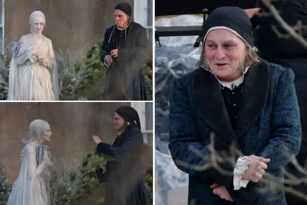 در جریان فیلمبرداری، جانی دپ در کنار آندرهآ ریسبرو دیده میشود؛ بازیگر انگلیسی که نقش روح کریسمس گذشته را ایفا میکند. تصاویر منتشرشده از پشت صحنه، نگاهی اولیه به فضای بصری و حالوهوای این بازآفرینی جشنمحور اما تیره از اثر کلاسیک دیکنز ارائه میدهد. دپ در برخی از این تصاویر، میان برداشتها از نقش خارج میشود و لبخند میزند که نشاندهنده فضای حرفهای اما صمیمی پشت صحنه است.