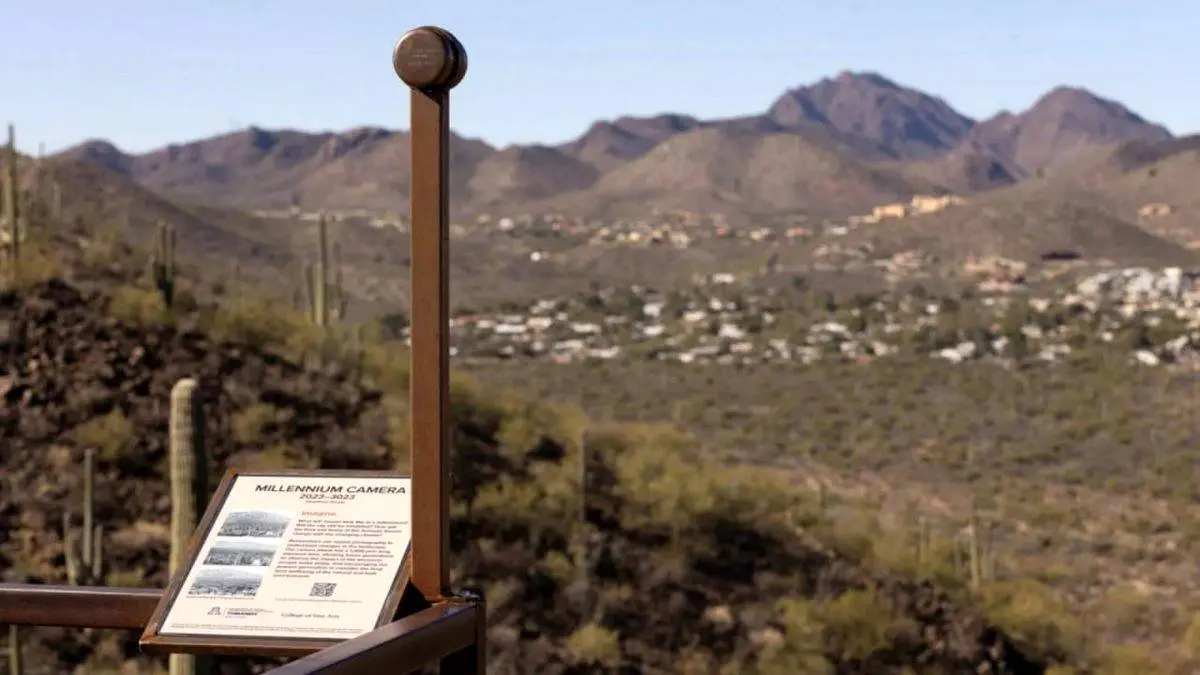 با کمک محققان آزمایشگاه صحرا در تپه توماموک آریزونا، این دوربین در کنار یک نیمکت مشرف به محله استارپس در توسان نصب شده است و در کنار آن پلاکاردی قرار داده شده که بازدیدکنندگان را تشویق میکند بنشینند و به آینده فکر کنند.