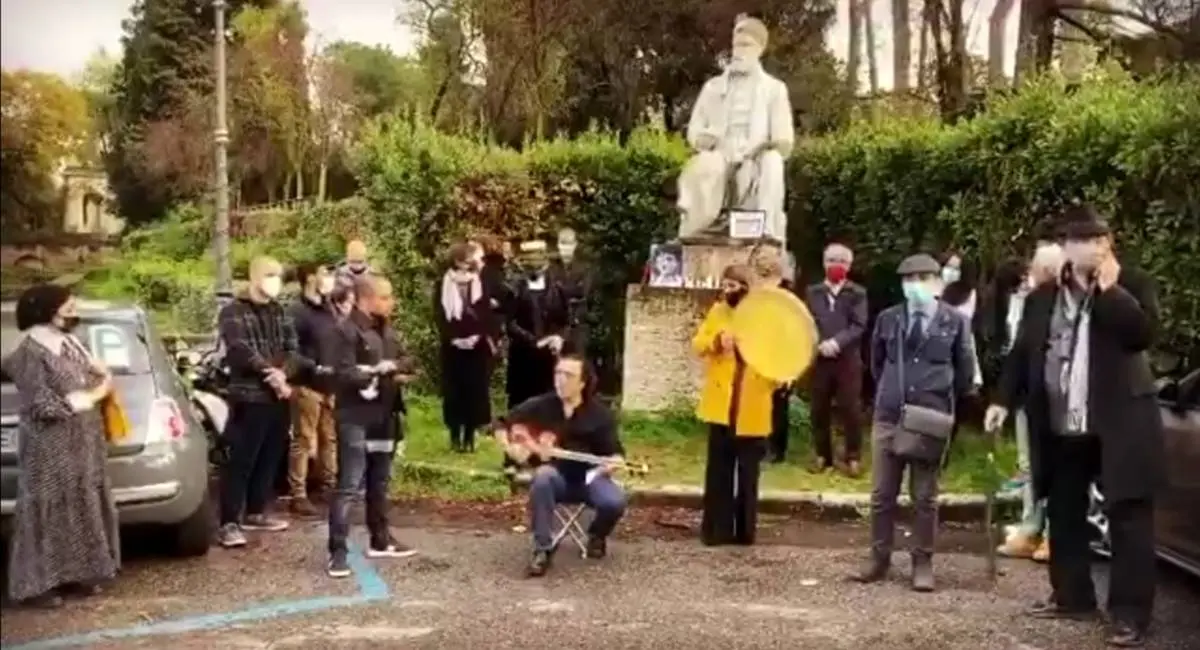 سرنا_روز یکشنبه جمعی از ایرانیان ساکن رم در میدان فردوسی این شهر گرد هم آمدند و با خواندن ترانه‌های محمدرضا شجریان و روشن کردن شمع، یاد او را گرامی داشتند