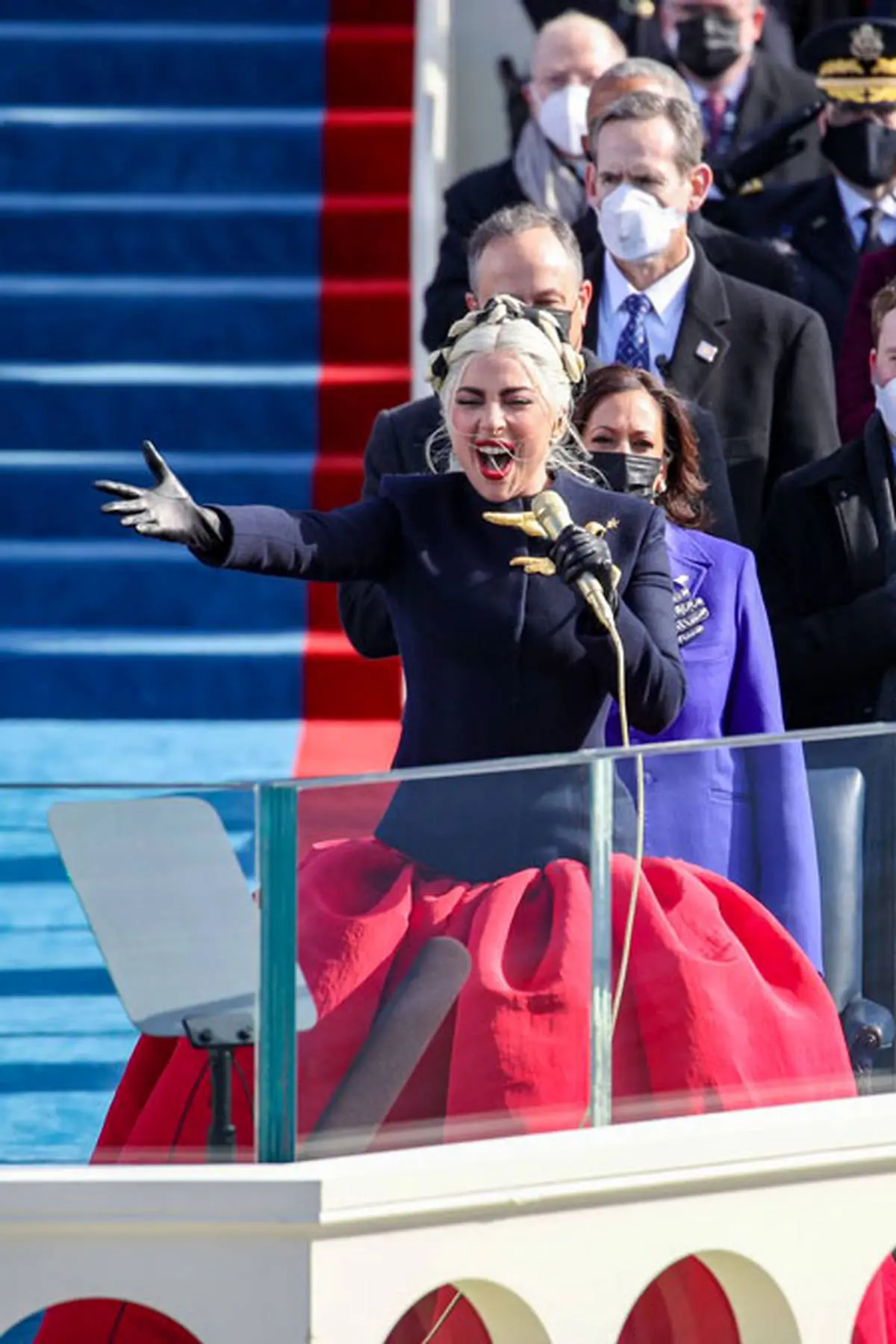 سرنا_مراسم ادای سوگند جو بایدن، ریٔیس جمهور منتخب آمریکا با حضور لیدی گاگا و جنیفر لوپز برگزار شد. لیدی گاگا در این مراسم با استایل آوانگارد، سرود ملی کشورش را خواند.