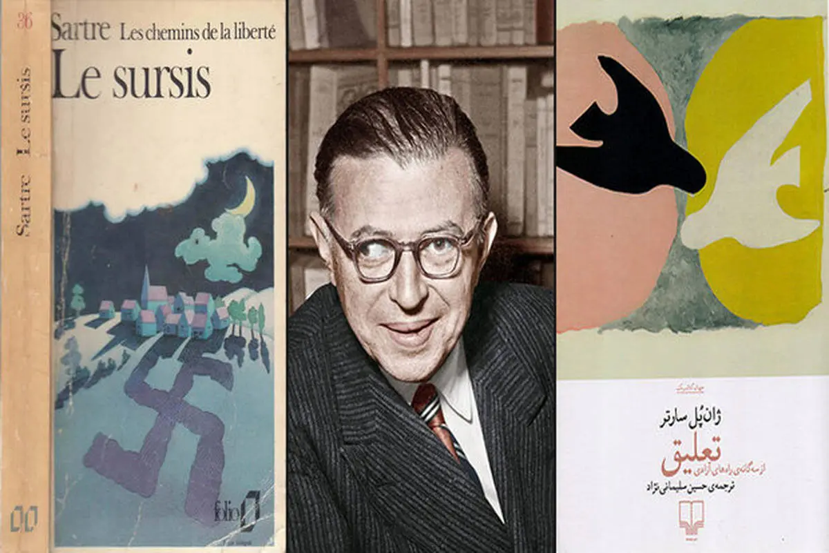 «دیگر دل و دماغ هیچکاری ندارم؛ تازه شبی پیش رو داشت که در آن حتی از سوپی که ته دلش را میگرفت خبری نبود، همه و همه پوچ بودند، احساس تنهایی و سردرگمی میکرد...» (صفحه ۱۲۸) و «دانیل لبخندزنان گفت: وحشتناک این است که هیچ چیز هرگز درست و حسابی وحشتناک نیست. بینهایت در کار نیست.» (صفحه ۱۴۳) یا «من برای زندگی کردن ساخته شدهام، برای زندگی! نه برای مردن: هیچچیز آنقدر باارزش نیست که آدم برایش بمیرد.» (صفحه ۱۹۲) نمونههایی از جملاتی هستند که سارتر در آنها، نظر خود را درباره زندگی بین شخصیتهای داستانش تقسیم کرده و تعمیم داده است. در نوشتههای همینرویکردِ نویسنده کتاب «تعلیق»، میتوان نام رمان دیگر سارتر یعنی «تهوع» را مشاهده کرد: «احساس میکرد شل و بیرمق شده است؛ تهوعی از معده یا گلویش بالا آمد و نمیدانست کدامیک بیشتر حالش را به هم میزند: این بیابان درخشان، این دیوارهای گلی سرخ یا این زن که در آغوشش کز کرده. چهقدر از اینکشور بیزارم.» (صفحه ۶۴) نام اثر دیگر سارتر «کودکی یک رئیس» ، نیز در کتاب «تعلیق» برده شده است: «واقعا داشتن رئیسی جوان، ورزیده و چالاک که میداند چه میخواهد، معرکه است.» (صفحه ۲۲۲) حتی نام «سن عقل» هم که دیگر رمان سارتر در سهگانه «راههای آزادی» است، در اینکتاب وجود دارد و به مفهوم آن اشاره شده است: «من کودکیام را گم نکردهام. سن پختگی، سن عقل از بین رفته بود، ولی دوران کودگی گرم گرم باقی مانده بود: هیچوقت تا ایناندازه به کودکیاش نزدیک نشده بود.» (صفحه ۳۹۹)
