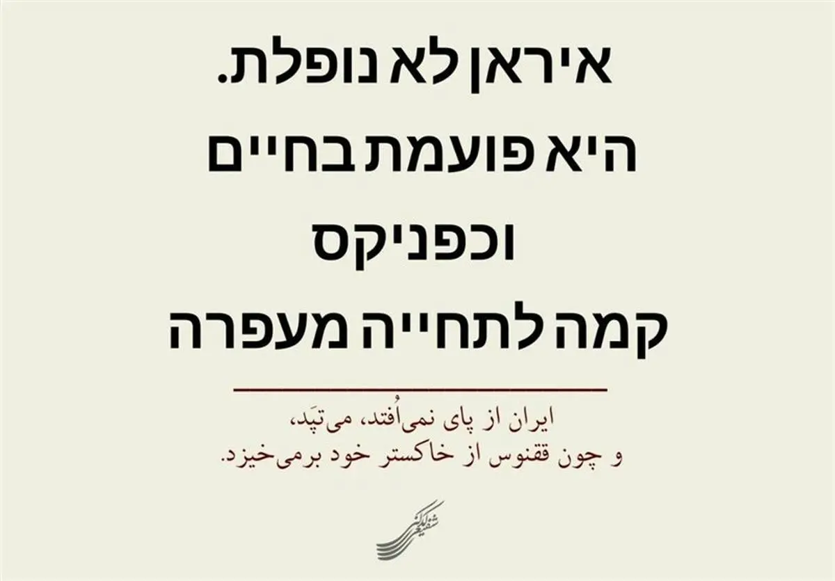 «ایران از پای نمی‌افتد، می‌تپد و چون ققنوس از خاکستر خود برمی‌خیزد.»