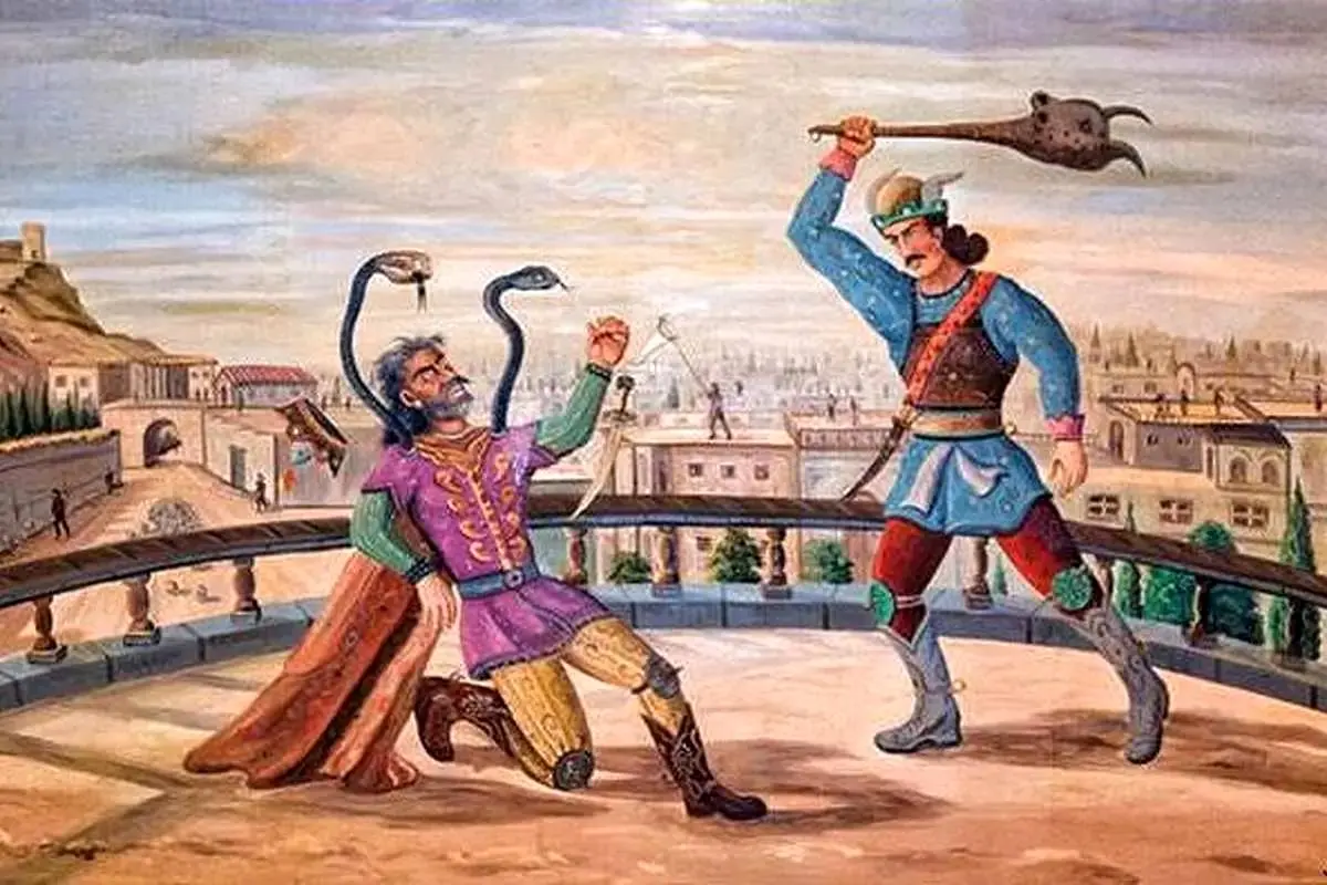 بنابر اساطیر ایران، ضحاک در روزگار پایانی جهان، از کوه دماوند سربرآورده و با نابود کردن یکسوم از آفریدگان جهان -اعم از گیاه و آب و آتش و انسان- دوباره قدرت را به دست میگیرد. بااینوجود در نهایت گرشاسب در نبردی خونبار ضحاک را از پا درآورده و میکشد.