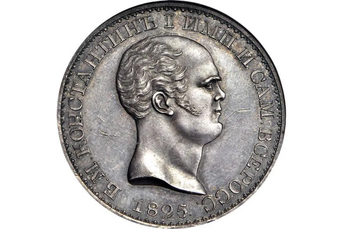 «کنستانتین» دومین پسر امپراتور «پاول یکم» بود. پس از به پایان رسیدن زندگی «پاول یکم»، «الکساندر» پسر اولش صاحب تاج و تخت شد. با مرگ ناگهانی «السکاندر یکم» و با توجه به اینکه او هیچ وارثی نداشت مسوولیت پادشاهی به «کنستانتین» رسید. در آن زمان مسوولان ضرب سکه به سرعت روند تولید نمونههای اولیه سکههای جدید را آغاز کردند. با این حال او بعد از چند هفته تصمیم گرفت از پادشاهی کنارهگیری کنند و تاج و تخت را برای برادر کوچکترش «نیکلاس» باقی بگذارد. در چشم به هم زدنی یک سلطنت پیش از آنکه آغاز شود به پایان رسید. اما چه بر سر سکههای ضربشده آمد؟ هشت سکه ضرب شده برای «کنستانتین» که پنج مورد از آنها با لبههای حکاکیشده سه مورد با لبههای ساده بودند نگهداری شدند و دوباره ذوب نشدند.