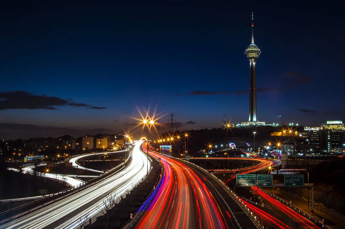 شاید مدرن‌ترین چهره تهران، شب‌هنگام آشکار شود. با غروب خورشید، پایتخت ردایی از نور بر تن می‌کند و برج میلاد، به‌عنوان نماد تهران مدرن، همچون الماسی درخشان بر فراز شهر می‌ایستد. منظره پانورامای تهران از سکوی دید باز برج، با اقیانوسی از چراغ‌های روشن که تا بیکران ادامه دارد، تجربه‌ای فراموش‌نشدنی است که با نمای شهرهای بزرگ جهان رقابت می‌کند. این برج و مجموعه‌های تفریحی-فرهنگی اطراف آن، به همراه بزرگراه‌های روشن و برج‌های نورانی، ثابت می‌کنند که تهران شهری زنده و پویاست که زیبایی آن در شب دوچندان می‌شود.