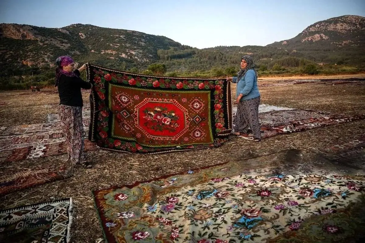 در حومه شهر آنتالیا، شهر ساحلی و گردشگری بزرگ در جنوب ترکیه هزاران فرش و گلیم که زیر نور خورشید پهن شدهاند، تکهدوزی رنگارنگ و باشکوهی را شکل دادهاند.