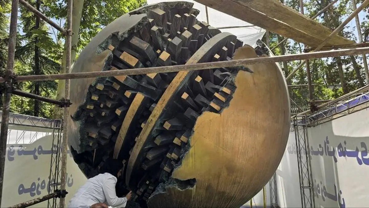 مرمت بزرگترین گوی برنزی پومودوروی ایران