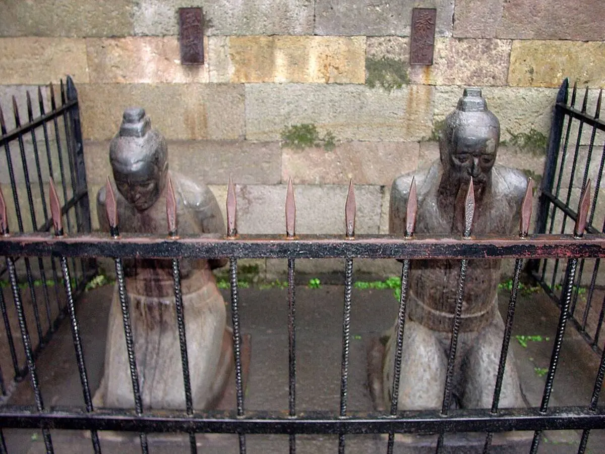 در شهر هانگژو چین، در کنار معبد و آرامگاه باشکوه ژنرال «یوئه فی»، ۲مجسمه زانوزده از «چین هوی»، صدراعظم سلسله سونگ و همسرش «وانگ» قرار دارند که بیش از ۵قرن است نماد خیانت و تحقیر در حافظه جمعی مردم چین شدهاند.