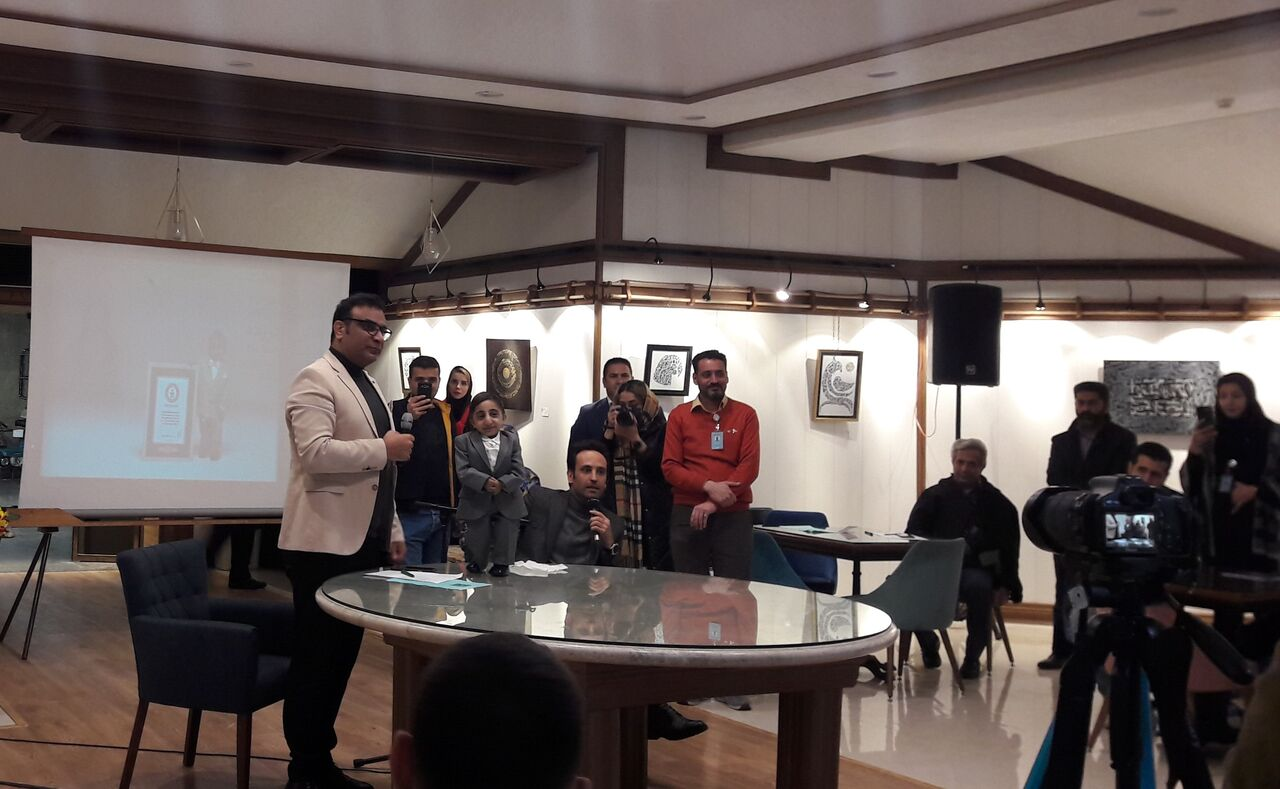 آیین معرفی جدیدترین رکورد ایران در گینس؛ افشین قادرزاده کوتاه قدترین مرد زنده دنیا روز یکشنبه (چهارم دی) با حضور فرزاد هوشیارپارسیان رئیس برج آزادی و مجموعه فرهنگی هنری انقلاب اسلامی، هادی رضایی مدیر رکوردهای ملی ایران، افشین قادرزاده و خانواده وی در کافه گالری برج آزادی برگزار شد.